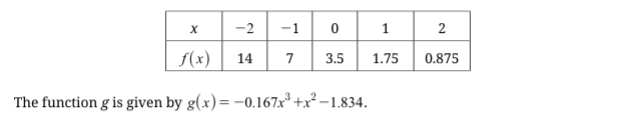 - Shows 2 different functions (non-sinusoidal) in 2 different formats (table, graph, or equation)