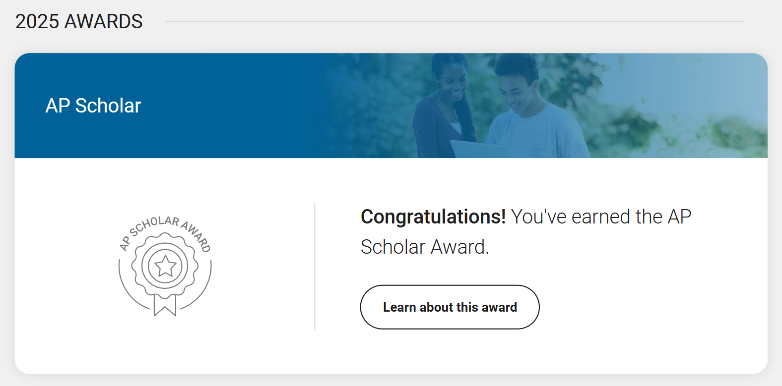 I took 3 AP classes freshman year: AP US History, AP Precalculus, and AP CS Principles. I scored a 5 on all three of them, earning me the AP Scholar award.